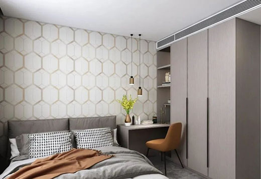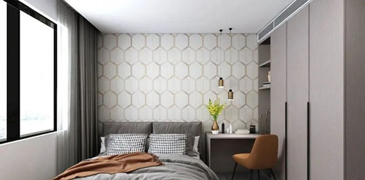 次臥中以高級(jí)灰為主色調(diào),加入淺色背景墻紙,讓整個(gè)空間視覺(jué)舒適感更強(qiáng)!!!