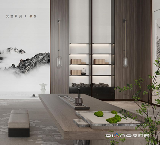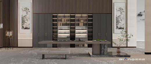 高端全屋定制皮阿諾「梵笙」系列將茶香從古代搬入現(xiàn)代生活,它將茶文化寫入設(shè)計(jì)中。從布局到陳列,都讓現(xiàn)代書房延續(xù)出人的文雅風(fēng)范,彰顯家居主人優(yōu)雅復(fù)古的個(gè)性品味。