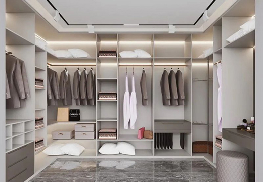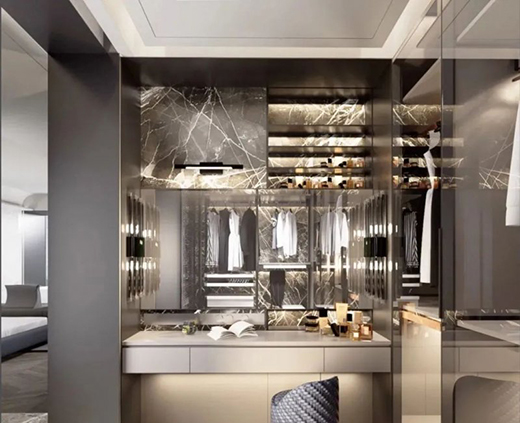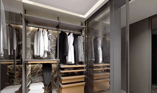 設(shè)計沒有繁復(fù)的修飾,卻把小型衣帽間裝成高級,有度,輕奢腔調(diào)表現(xiàn)得淋漓盡致。