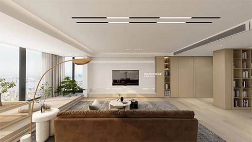 天花頂面的燈線設(shè)計,也是打造線條感的一種。