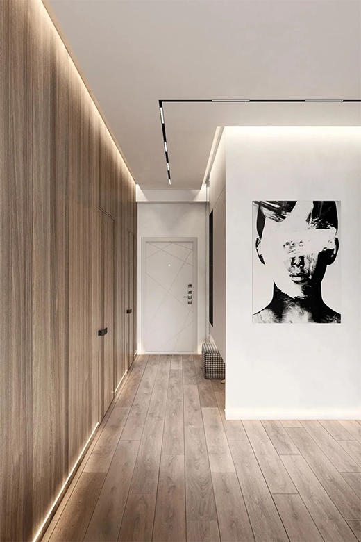 隱形踢腳線設(shè)計,加強(qiáng)空間視覺的統(tǒng)一性,強(qiáng)化空間風(fēng)格。
