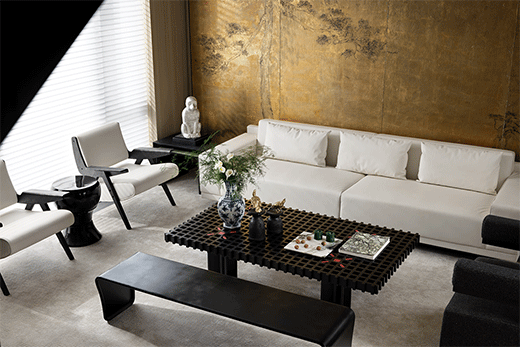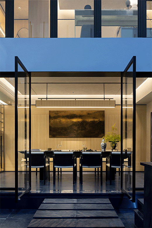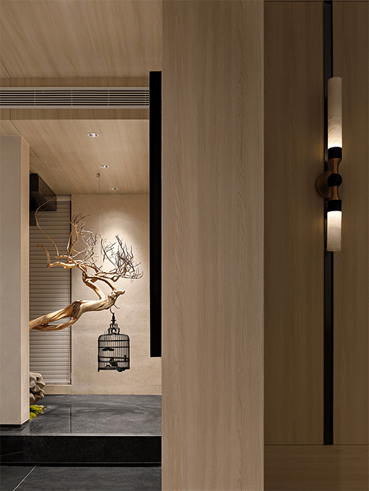 在這套五層別墅中,設(shè)計(jì)師提取東方美學(xué),重構(gòu)室內(nèi)感官體驗(yàn),并堅(jiān)持以人與自然共生的設(shè)計(jì)哲學(xué),將地域人文融入日??臻g中,構(gòu)筑人與自然的和諧關(guān)系,使住戶能在現(xiàn)代化的城市語(yǔ)境中享受“出則繁華,入則悠然"的自然詩(shī)意生活。
