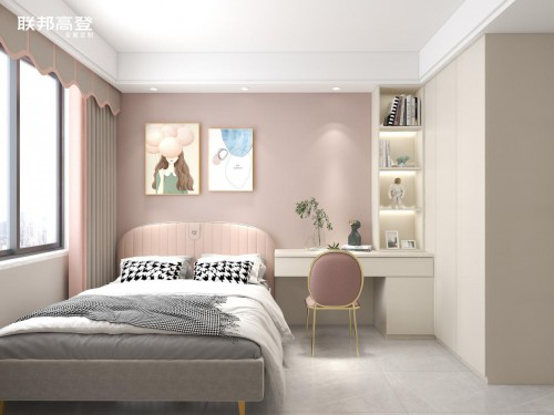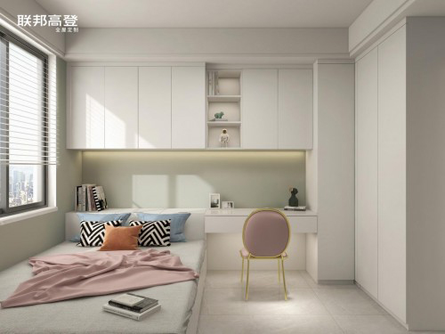 女兒房,映入眼簾的簡約清新布局,粉與白的夢幻搭配嬌俏可愛,真是很難讓人不心動呀~書桌柜+衣柜一體設(shè)計,讓空間利用率更高,學(xué)習(xí)收納睡眠有效進(jìn)行時!
