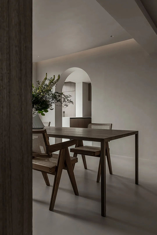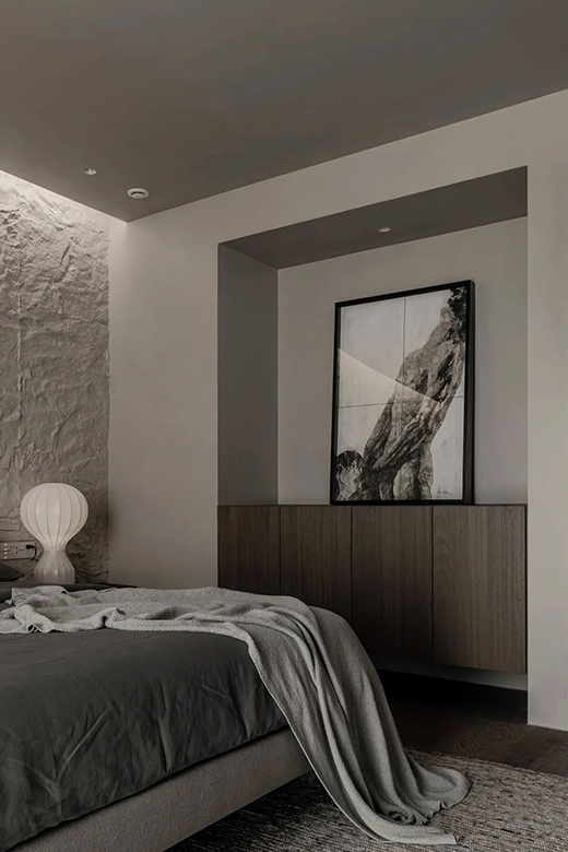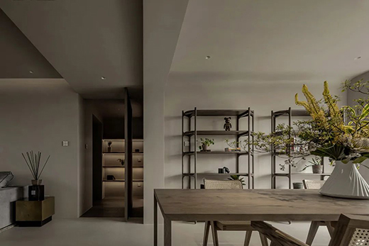 在最樸實(shí)無華的空間里,容納淺色及天然材質(zhì)的沙發(fā),彰顯自然、安靜、禪意的東方美學(xué)。紋理質(zhì)樸的器皿、精細(xì)打磨茶幾、獨(dú)特紋理地毯,每件物品都能散發(fā)出耐人尋味的溫度,在低色溫的燈光渲染下,室內(nèi)氛圍呈現(xiàn)安靜的和諧感及朦朧感。