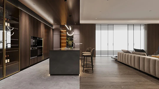 此外,開放式廚房的互動(dòng)屬性強(qiáng)烈,可以容納多人同時(shí)使用廚房,也不會(huì)因墻體的遮擋阻礙到家人間的交流互動(dòng),能有效提升家庭融入感。