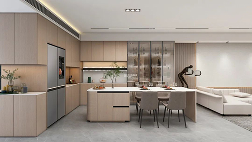 為什么越來越多人選擇開放式廚房?從空間實(shí)用性而言,開放式廚房能增大使用面積,提高利用率;從情感需求上來說,開放式廚房能加強(qiáng)家庭成員間的交流互動(dòng)。