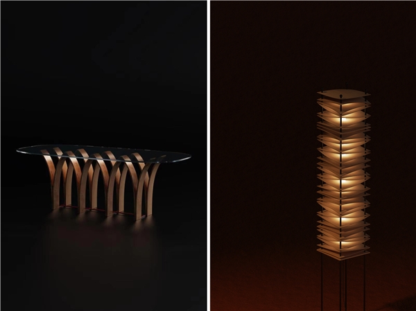 中國原創(chuàng)設計品牌XUE即將在本屆展會上亮相的“橋”(左)“粼光”(右)