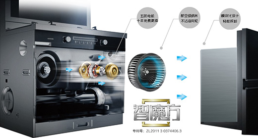 特有的金屬煙道,全密封結(jié)構(gòu),突破傳統(tǒng)的氣動布局,杜絕漏油的同時(shí)吸力更加強(qiáng)勁。