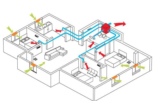 -室內(nèi)進風口和室內(nèi)排風的安裝位置須保持一定距離(至少3倍管徑以上)