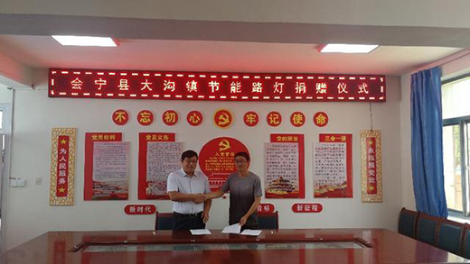 甘肅新能源協(xié)會攜手愛心企業(yè)甘肅耀華燈飾科技有限公司、甘肅新啟源生態(tài)環(huán)境科技有限公司今天在會寧縣大溝鎮(zhèn)舉辦了太陽能LED路燈照亮鄉(xiāng)村的捐贈活動。