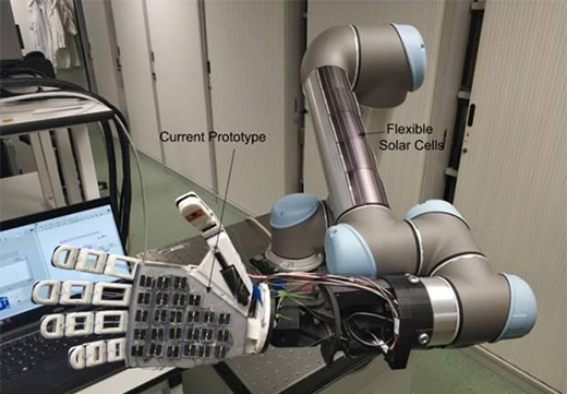 該技術(shù)在IEEE Transactions on Robotics上發(fā)表,論文中描述,該技術(shù)不僅使用微型太陽能電池為機器人手中的執(zhí)行器供電,而且還可以通過測量物體接近并減少可用光時電池輸出的變化來使其具有“觸摸”的感覺。 。通過測量每個單元中產(chǎn)生的功率水平,電子皮膚可以檢測到傳入物體的形狀。