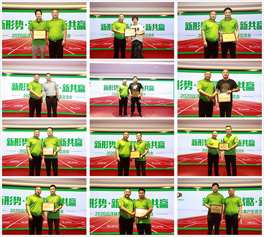 遠洋環(huán)保塑膠跑道創(chuàng)始人余總一一為加盟商頒發(fā)授權(quán)獎牌,在這場充滿喜悅的儀式中,本次交流會漸漸落下圓滿帷幕。