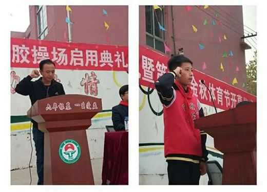 出席本次塑膠操場啟用儀式的領(lǐng)導(dǎo)有區(qū)教體局孫玉堂主任、黃旗堡街道黨工委盛偉平副書記、學(xué)區(qū)徐萬志主任,還有駐村的領(lǐng)導(dǎo)代表。教體局孫主任和學(xué)區(qū)徐主任為本次活動致辭。隨后,出席儀式領(lǐng)導(dǎo)共同為新運動場揭牌。