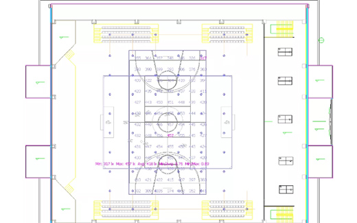 值得一提的是,比賽燈具與場(chǎng)地?zé)艟呖蓡为?dú)控制,確保場(chǎng)地照度達(dá)到500LUX以上,達(dá)到國(guó)家2級(jí)照明標(biāo)準(zhǔn)的同時(shí),若不需要觀眾席亮燈,還可通過電控箱關(guān)閉相應(yīng)的燈具,節(jié)能環(huán)保。