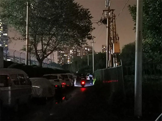 5月31日晚上,記者來(lái)到首都體育學(xué)院西路,狹窄的道路看起來(lái)十分昏暗。雖然路西側(cè)有商場(chǎng)的照明燈,但是幾乎照不到首都體育學(xué)院西路上。往來(lái)的不少行人都打開(kāi)了手機(jī)上的手電筒,才能勉強(qiáng)看清腳下的路。