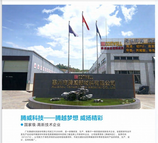 廣東騰威科技股份有限公司成立于2008年,是一家集研發(fā)、生產(chǎn)、銷售于一體的國家高新技術(shù)企業(yè)、全國首家專業(yè)開發(fā)生產(chǎn)綠色環(huán)保的運(yùn)動(dòng)場館地面材料、海綿城市及市政路面防滑鋪裝材料、新型商業(yè)地坪材料的新三板掛牌上市企業(yè),公司股票簡稱【騰威科技】,股票代碼【872575】。