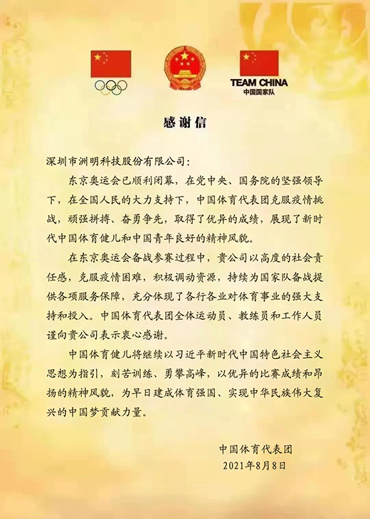 ▲奧運(yùn)會·中國體育代表團(tuán)感謝信