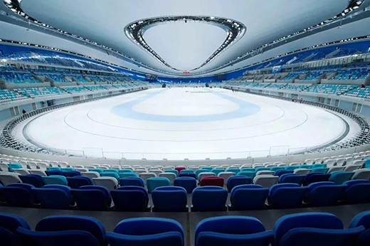 2022年冬奧會標(biāo)志性場館——國家速滑館的設(shè)計理念來自于“冰和速度相結(jié)合”的創(chuàng)意,沿著外墻曲面由低到高盤旋而成的“冰絲帶”,就像速度滑冰運(yùn)動員高速滑動時留下的一圈圈風(fēng)馳電掣的軌跡。冰上畫痕成絲帶,22條“冰絲帶”象征著北京2022年冬奧會。