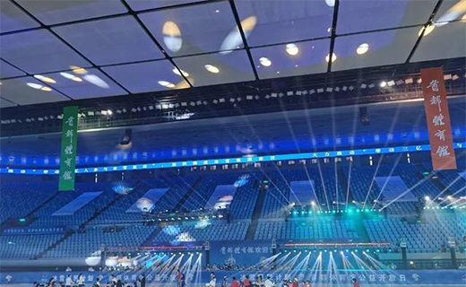 場(chǎng)館外立面泛光照明采用了智慧控制系統(tǒng),不僅有奧運(yùn)五環(huán)、冬奧吉祥物冰墩墩、絲帶飛舞、速滑館卡通人物、禮花綻放、大紅燈籠等數(shù)十種燈光造型的燈光秀。更可滿足打字、播放圖片,屋面激光燈等需求。
