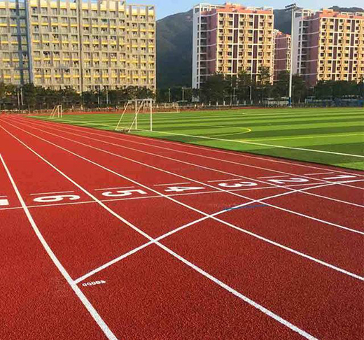 1、彈性:混合型跑道面層使用EPDM(硅PU)顆粒,具有適當(dāng)?shù)奈锢韽椥?,在運(yùn)動時可對運(yùn)動員產(chǎn)生反彈力,保護(hù)運(yùn)動員腿部關(guān)節(jié)健康。