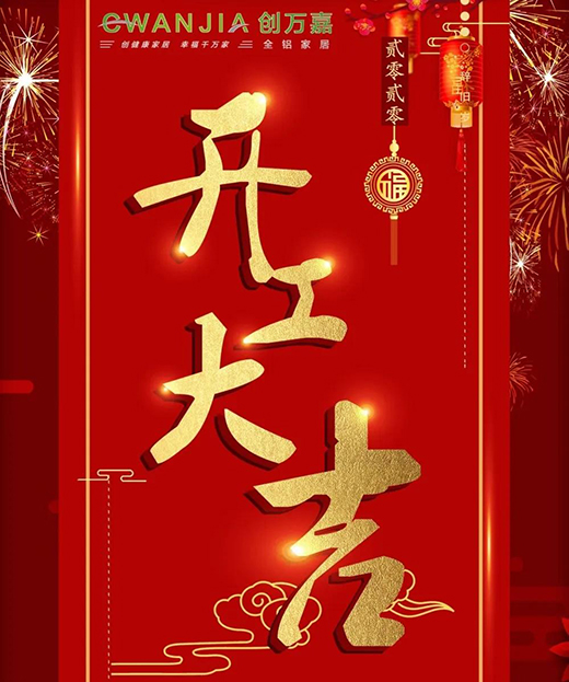 2月26日,陽(yáng)光明媚、風(fēng)和日麗,鞭炮聲聲、開工大吉,創(chuàng)萬(wàn)嘉全鋁家居正式復(fù)工復(fù)產(chǎn)!在疫情得到初步控制、春暖花開的時(shí)刻,創(chuàng)萬(wàn)嘉全鋁家居全體員工回歸到各自的工作崗位、齊心追逐全新夢(mèng)想!鞭炮鳴、滿堂紅,寓意著公司2020年將勇往直前、把控新機(jī)遇、生意紅紅火火、事業(yè)蒸蒸日上!
