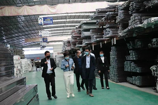 嘉賓們參觀德奧羅蘭全鋁家居型材倉(cāng)儲(chǔ)和生產(chǎn)車(chē)間