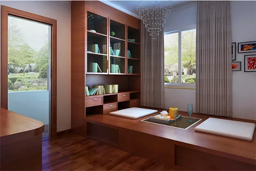 現(xiàn)在中國榻榻米的局部鋪設(shè)很受歡迎,因?yàn)樗?jié)約空間,收納功能強(qiáng),舒適隨意,可以在上面喝茶、讀書、吃飯、睡覺……