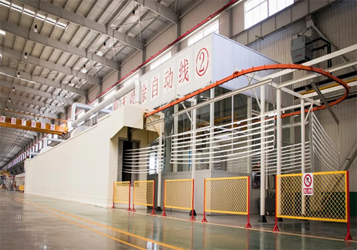 將型材放置在掛件上,利用靜電噴涂原理,將100%的固體粉末涂料,高溫?zé)竞蠊袒?,在產(chǎn)品表面形成一層約為60微米的涂料層。處理后該涂層具有極強(qiáng)的耐酸性、耐堿性、耐撞性、耐磨損性。其粉末涂料不含毒性,不含溶劑和不含揮發(fā)有毒性的物質(zhì)。