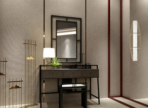 那么對(duì)于梳妝臺(tái)的擺放,就需要更多的思考,可以去掉配套梳妝凳,保留鏡子和梳妝臺(tái),放在門廊區(qū)域,起到一個(gè)出門整理儀表的作用(注意梳妝臺(tái)臺(tái)面不能太寬)。