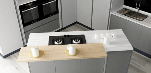 如上圖的外探臺(tái)面,看似原木整板,實(shí)際是通過木紋表面處理技術(shù)制成的,材料是鋁蜂窩板。