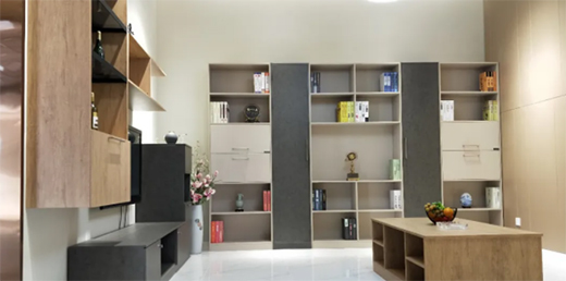 移門和沒有柜門的全鋁書柜會令書籍裸露在外,容易積壓灰塵,比較難以打理,選擇時應(yīng)慎重??紤]到部分書籍或雜物陳列出來會影響美觀和整體效果,可以選擇隱藏式柜門。