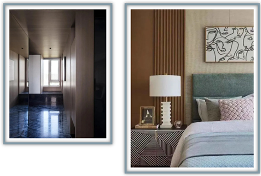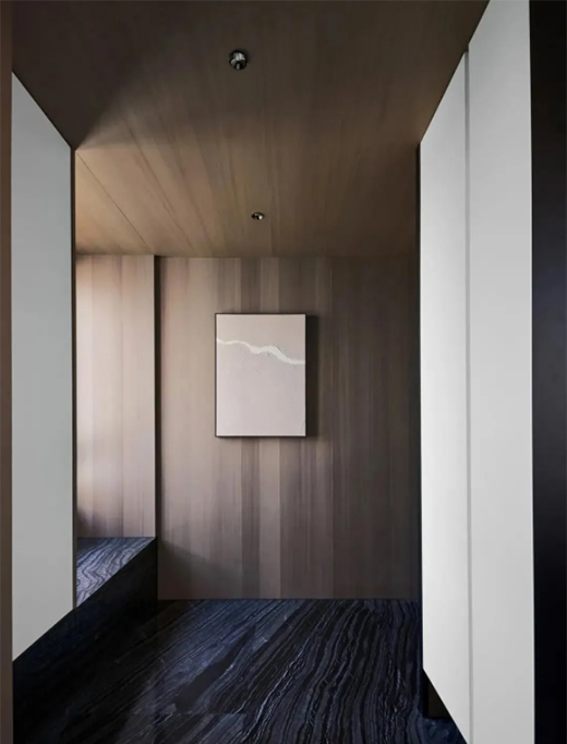 墻面裝上鋁制嵌板,簡潔的線條和淡花紋引導著視線,墻面也變得豐富起來,可將面板保留紋路,與地板的色彩形成對比搭配,不同風格可營造出不一樣的高級優(yōu)雅感。