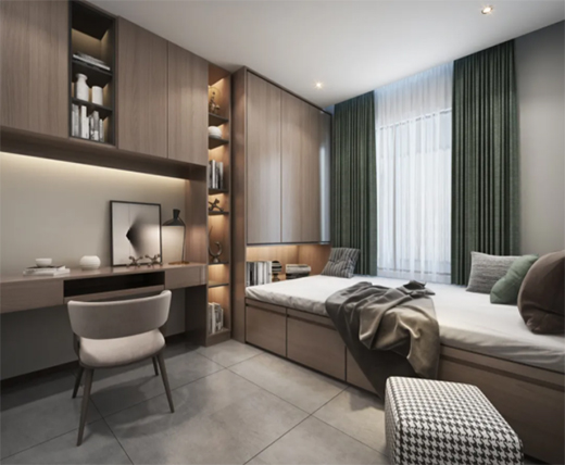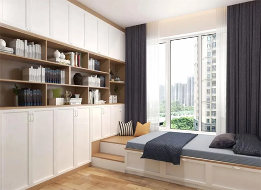 中小戶型也想擁有全鋁書桌書柜,可以利用飄窗與床頭的一側(cè)墻面定制到頂飄窗柜,采光通透,空氣清新,坐在榻榻米上看書,盡是滿滿的愜意。
