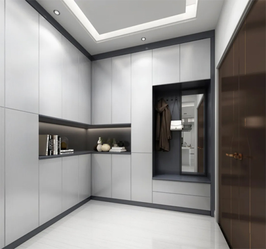 大戶型一般從進(jìn)門到客廳還有很大的空間,可以整墻打造全鋁玄關(guān)柜,充分利用到頂柜打造視覺統(tǒng)一的整體空間,讓入戶空間顯得高端大氣的同時(shí)還特別實(shí)用。