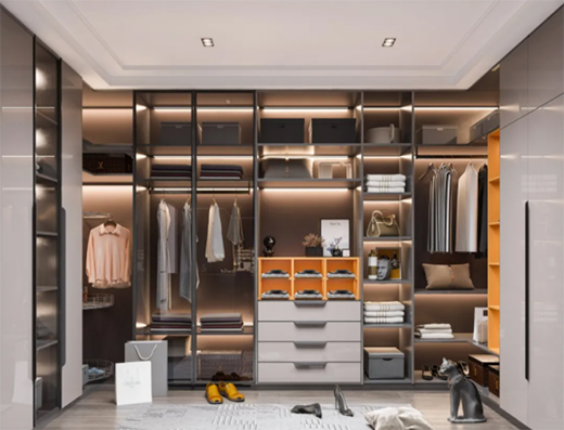 大戶擁有者的你,可以利用一個(gè)小房間,或者在主臥劃分區(qū)域,打造成一個(gè)獨(dú)立的步入式到頂衣帽間,不受空間尺寸的限制,長衣區(qū)、短衣區(qū)、飾品區(qū)、儲(chǔ)藏區(qū)、甚至換鞋區(qū)一應(yīng)俱全,所有衣物儲(chǔ)存統(tǒng)統(tǒng)收入其中,生活品質(zhì)和幸福感雙提升。