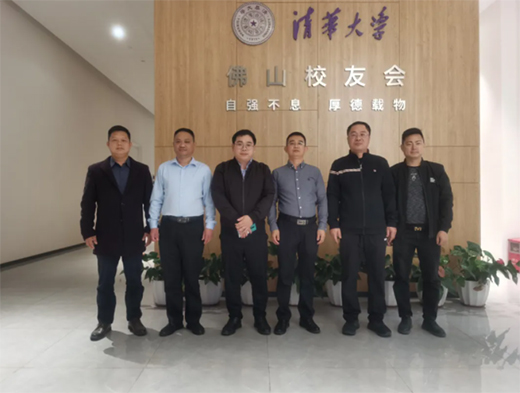 (華鋁家居總經(jīng)理吳新軍(右二)與清華大學(xué)袁教授(右三)、力合科技園總監(jiān)甘運(yùn)乾(左三)等人合影)