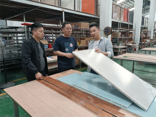 為了更深入地了解全鋁家居材料應(yīng)用和新品進(jìn)度,華鋁家居總經(jīng)理吳新軍來到了紅企鵝智能鋁家居。紅企鵝智能鋁家居營銷負(fù)責(zé)人盧毓亨熱情地接待了吳總一行,向吳總介紹了紅企鵝智能鋁家居的專利產(chǎn)品——多層鋁蜂窩板,以及該產(chǎn)品在全鋁家居門板、全鋁家居柜子和鋁門的應(yīng)用。吳總認(rèn)為,這類特色產(chǎn)品均有獨(dú)特的應(yīng)用范圍和人群,能夠豐富全鋁家居行業(yè)生態(tài),值得鼓勵和支持。