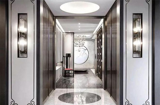 這種玄關(guān)多是狹長的,狹長的過道,恰好將兩個獨立區(qū)域一分為二,對于這種類型的玄關(guān),設(shè)計師一般都會建議業(yè)主在一面墻,做大量柜子,包含衣帽柜、儲藏柜,另一面墻可以做些藝術(shù)裝飾。