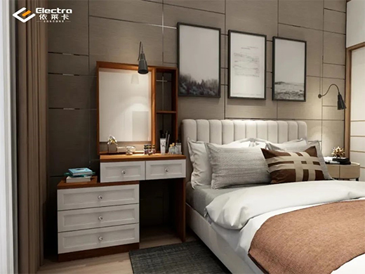 讓梳妝臺(tái)靠床靠邊,依萊卡全鋁家居以定制的設(shè)計(jì),使其更加完美地契合房型。