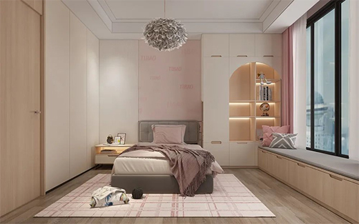 兒童房在造型上可以多花點(diǎn)心思,比如柜門(mén)的設(shè)計(jì),增添童趣。其他空間的柜子保持統(tǒng)一,并重視實(shí)用性。
