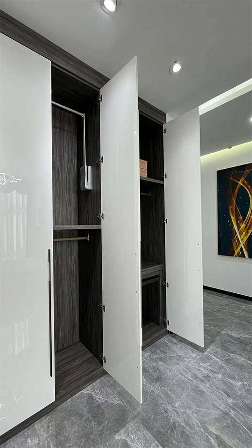 鋁板單塊尺寸可以達到1.22*2.44M,最高可以做到3M,滿足基本戶型和挑高戶型的需求,板材無需拼接,一門到頂,更加美觀。鋁板質(zhì)量輕、剛度大,門板背面無需拉直器,輕奢極簡、方便耐用。