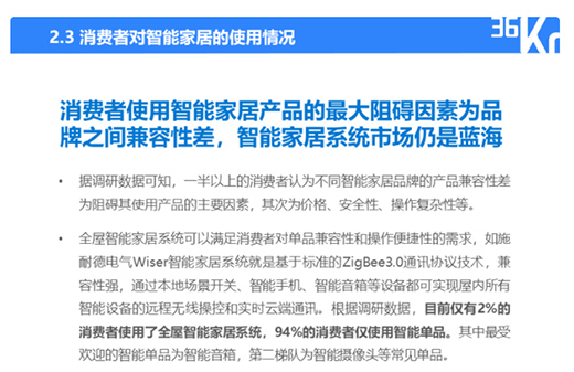 記得在小時(shí)候,我們遇到可以支持語音控制的電子設(shè)備都覺得很神奇,更不會(huì)想到多年以后會(huì)誕生智能家居這個(gè)千億級(jí)的市場(chǎng)。據(jù)36氪發(fā)布的《2020年智能家居行業(yè)研究報(bào)告》用戶調(diào)研數(shù)據(jù)顯示,94%的受訪者表示使用過智能家居單品,但僅有2%的受訪者使用了全屋智能家居系統(tǒng),目前國(guó)內(nèi)智能家居市場(chǎng)滲透率為4.9%。