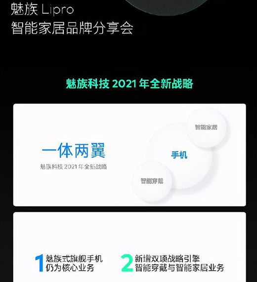 踩著 2020年的尾巴,魅族宣布其正式進(jìn)軍高端智能家居市場。魅族Lipro表示:魅族科技在 2021年的全年戰(zhàn)略布局,將會以魅族式旗艦智能手機(jī)為核心,新增雙頂戰(zhàn)略引擎智能家居和智能穿戴業(yè)務(wù)。