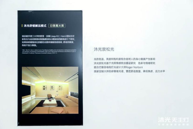 羅杰·納博尼認為,光的存在會從生理、心理、情緒、文化四個維度影響個體。他強調(diào),未來的光應(yīng)該是自然的光、情緒的光、智能的光,而這也與沐光的研發(fā)理念不謀而合。
