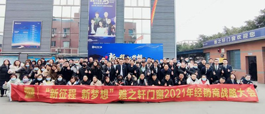2021年新年伊始,以“新征程·新夢想”為主題的中國知名門窗企業(yè)雅之軒門窗2021年經(jīng)銷商經(jīng)銷商戰(zhàn)略峰會在其工業(yè)生產(chǎn)基地隆重召開,來自全國的雅之軒渠道合作伙伴匯聚一堂,同公司共謀雅之軒門窗戰(zhàn)略發(fā)展大計和美好未來!