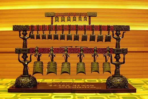 天籟的低吟、智者的沉思、人文的風韻,這一切都在編鐘和編磬的“金玉齊聲”中交相輝映,它帶給我們穿越千年的藝術啟迪,“大音和合”,鐘磬之樂,溝通心靈,營造和諧。