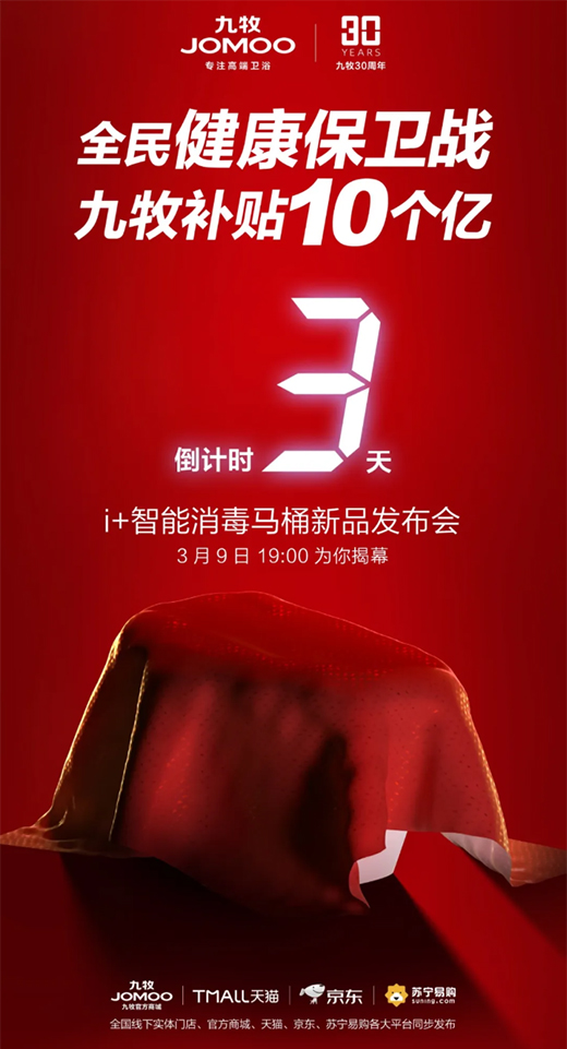 九牧愛家智能消毒馬桶將于3月9日19:00 盛世首發(fā),敬請關注。
