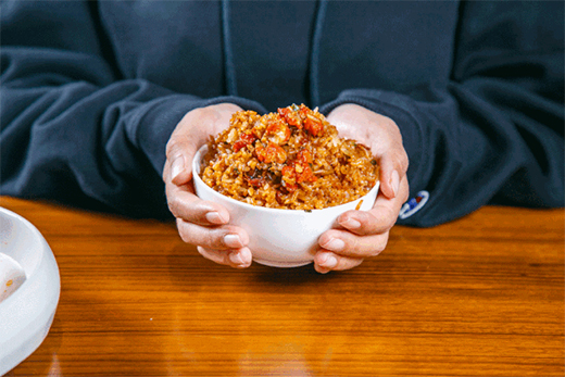 剛剛出鍋的炒飯熱氣騰騰,里面承載著滿滿的生活碎片和情感因素,炒飯雖至簡,可滋味卻至豐。