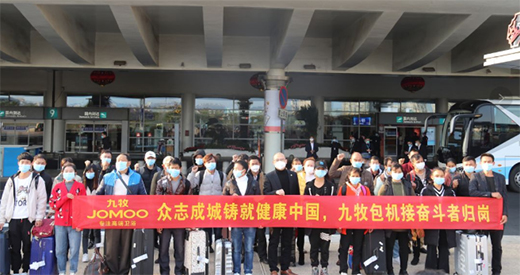 作為一家有責(zé)任感的民族品牌,九牧在履行對(duì)社會(huì)的責(zé)任和擔(dān)當(dāng),積極奔赴戰(zhàn)“疫”一線提供健康產(chǎn)品和服務(wù)的同時(shí),關(guān)心員工身體健康。為了保障員工返工全程的健康和安全,九牧充分調(diào)動(dòng)各方資源,包機(jī)、包車接送全國(guó)各地的九牧奮斗者返崗,投入物資的保障和生產(chǎn)中。