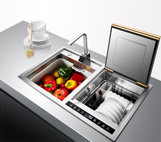 華動(dòng)智能水槽式洗碗機(jī),專注于中國廚房的清洗。創(chuàng)造性的將洗碗機(jī)功能,水槽功能,蔬果凈化功能融合在一起。99.99%的除菌率,2組超聲波,臭氧消毒功能。納米碗架,耐磨不傷手。冷熱水一鍵控制,環(huán)保節(jié)能。讓最愛的人解放雙手。